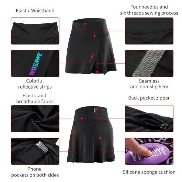 WOSAWE Summer Women Cycling Skirt Bike Shorts 2 in 1 Tights Quick Dry 3D Gel Padded Shorts