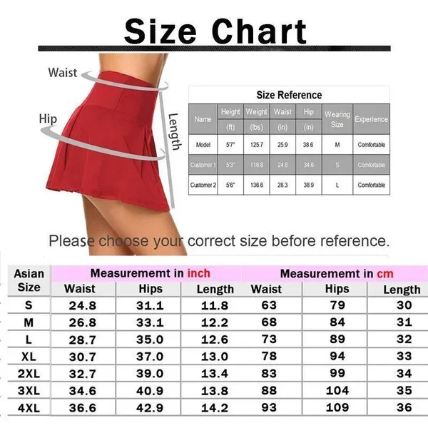Product details Body Closure: None Body Fit: Regular Dress or Skirt Length: Mini Material: Polyester Sizing - Origin Country: US Wash: Machine wash Description style: tennis skirt Healthy fabric & Cute mini skirt pattern: Solid color Main fabric composition: Polyester (polyester) 92% Polyester, 8% Spandex Feature£º *Lightweight, Wrinkle resistant,Stretch,Comfortable to wear,Breathable,Skin-friendly and Quick-drying *high performance fabric.Let you enjoy the exercise and stay cool and dry. *Secure & Comfortable Two Layer - skirt outer and shorts inner, you can enjoy your sports without worries.Double layer triangle shaped gusset avoids riding up & pinching, enhances your range of motion. *Perfect sport skirt - Perfect for tennis, golf, cycling, volleyball, running, hiking, walking, dance, skate, gym workouts, any outdoor activities or daily casual wear. color£º14 colors to choose