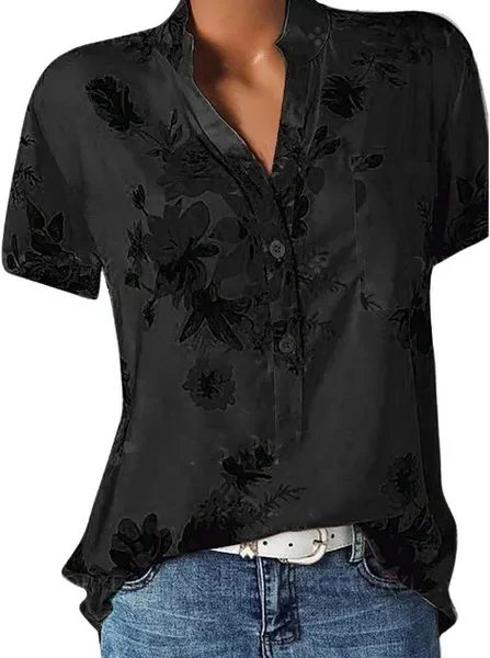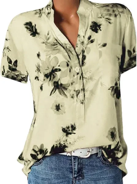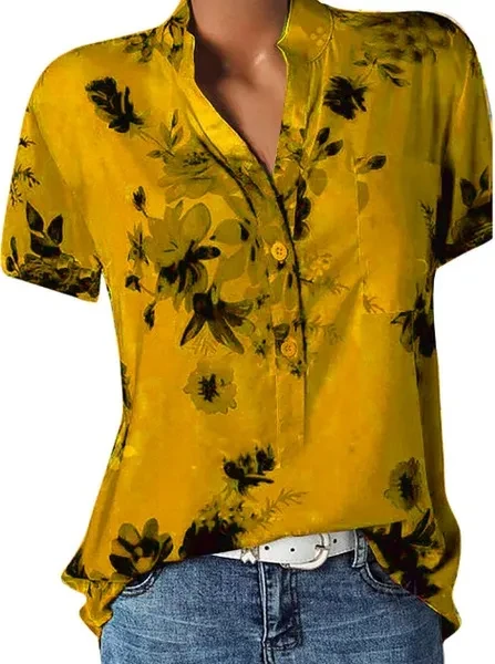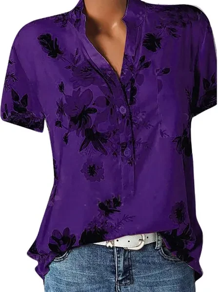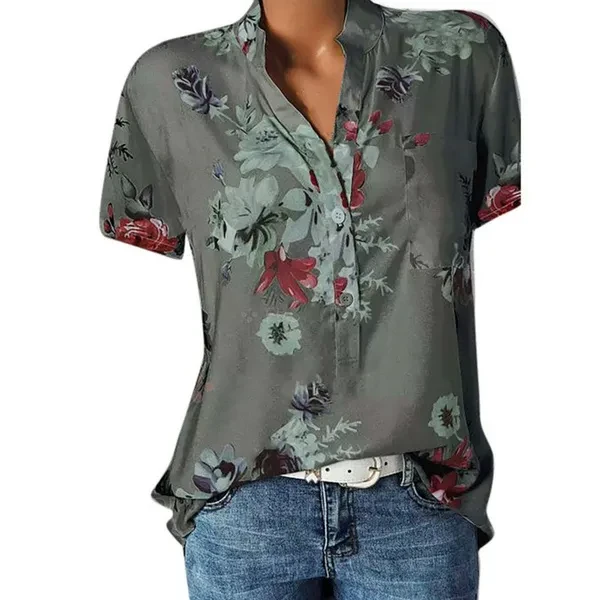 XS-8XL Women Summer Plus Size Fashion Floral Print Short Sleeve Tops Casual Ladies Fashion V-neck Shirt Women Blouse