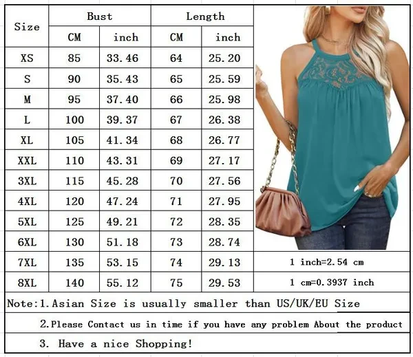 Welcome to Our store ! We have our own factory, we will provide the lowest price, the best quality and service. Material: Cotton Style: sleeveless shirt, tank top, Popular elements: Camisole ,Lace Neckline: O-neck Pattern: Solid Color Sleeve: Sleeveless Style: Fashion casual Size : XS-8XL Color: As the picture show Package included: 1x tank top This vest is new arrive,you can click on the collection Please check the size,the size chart in picture or in description is the real Hope our product will meet your expect. If you love it,please give us a five-star feedback or upload your beautiful photos as buyers show, to be a reference to other beauties. Your support is our motivation Thank you very much! Note: Same as picture but pls note the actual colors may slightly vary from the picture due to the different monitor setting and light environment when photos were shot. Have a nice Shopping! Name of Responsible Person: VAT SPEED SL Address: Calle Antonio Salvador N99.1 eMail:services@vatspeed-eu.com This merchant is committed to only offering products that comply with the General Product Safety Regulation.