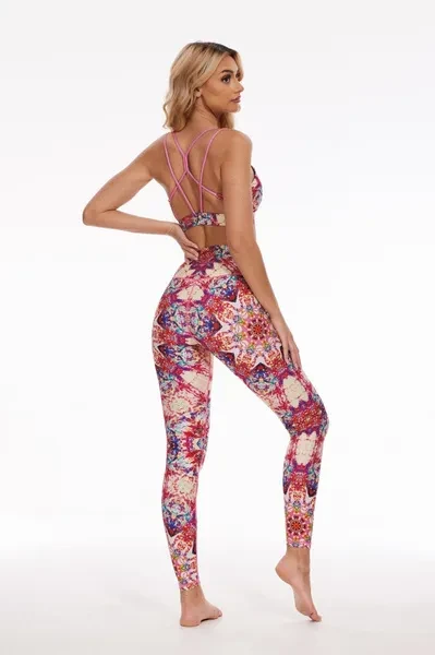 The pattern draws inspiration from Mandala paintings, which represent an exotic style, often utilized in psychological therapy. It characterized by repetitive patterns revolving around a central point. Using colors like purplish-red, yellow, blue, and green, the overall design depicts an irregular yet symmetrical look. The intricate variations in lines and rich colors form a unique totemic style, evoking a sense of ancient and mysterious feeling. The pattern encourages you to introspect into the enigmatic inner world, aiming for healing and self-relief during your exercise routine.